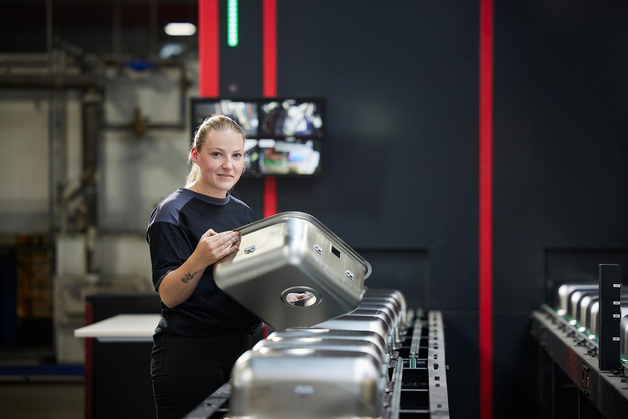 REGINOX achtet auf eine verantwortungsvolle Produktion: Der für die Herstellung von Spülen und Arbeitsplatten verwendete Edelstahl besteht zu etwa 90 % aus recyceltem Stahl. Der bei der Produktion anfallende Stahlabfall wird zu 98 % gesammelt und wiederverwertet. Für die Arbeitsplatten wird ausschließlich FSC-zertifiziertes Holz verwendet.